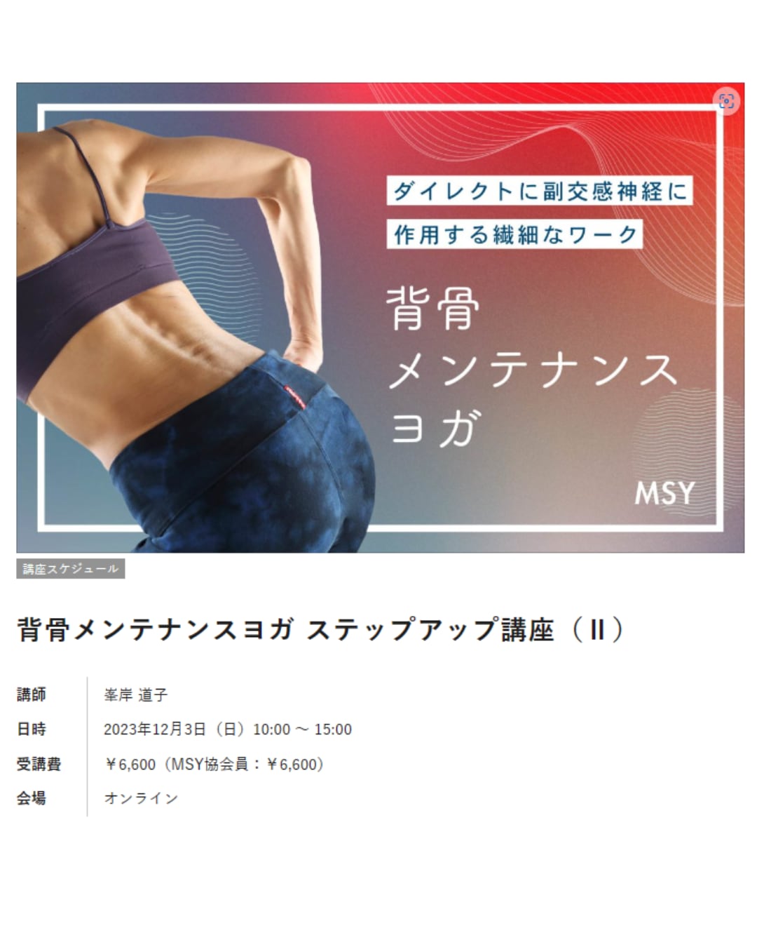 8月9日(日) 14:00~16:00 背骨メンテナンスヨガ ステップアップ講座Ⅱ